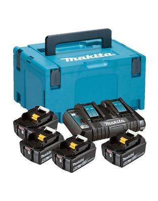 Pack énergie composé de 4 batteries 18 V Li-Ion et d'un chargeur double DC18RD livrés dans un coffret MAK-PAC